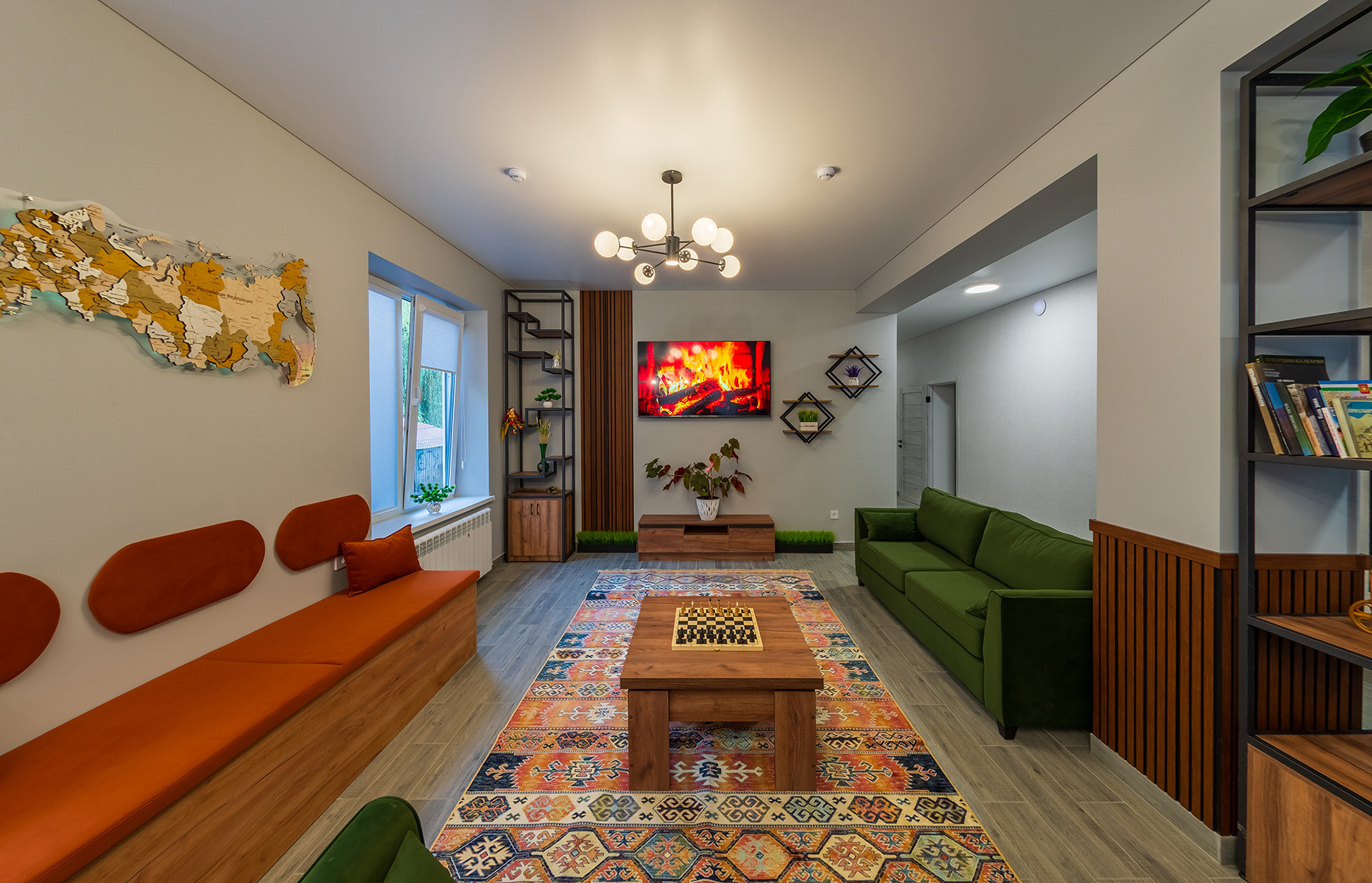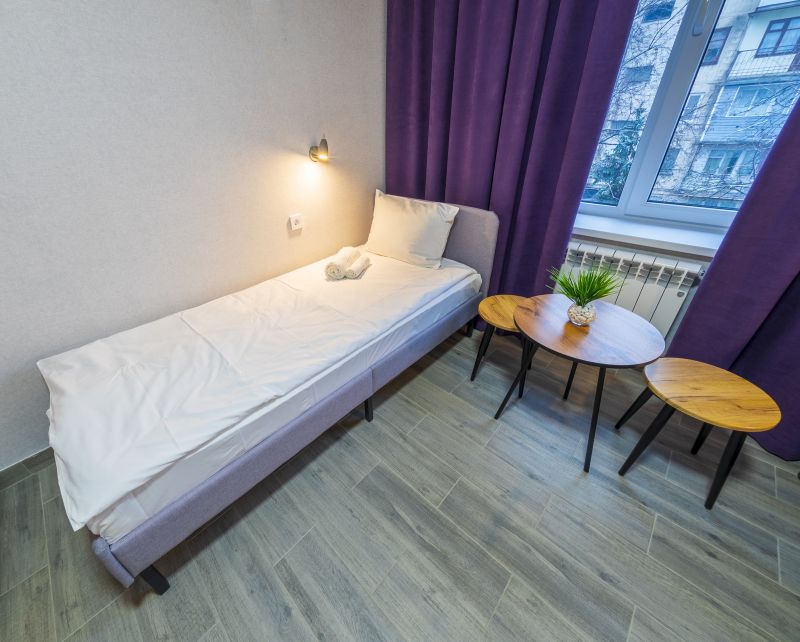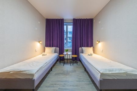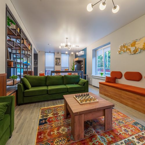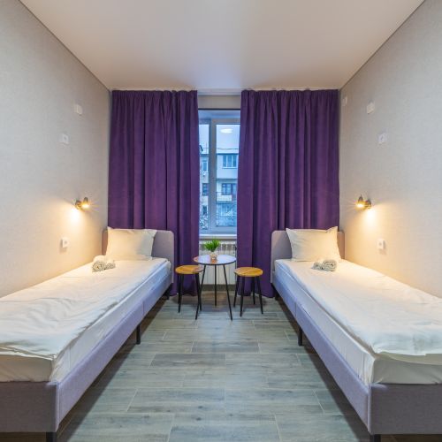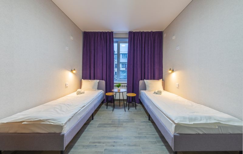 В хостеле 12 четырёхместных номеров с двухъярусными кроватями, 2 двухместных номера с двумя отдельно стоящими кроватями, 2 семейных номера площадью 11 м2 с двуспальной кроватью.